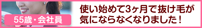50歳を過ぎた私でも育毛剤を使うことには抵抗がありました。でも薄毛がこれ以上酷くなるのを防ぎたくて、そんな私が選んだのはCA101です。見た目に育毛剤だと分かってしまうデザインや、あまりにもかわいすぎるデザインのものは嫌だったのでCA101のスタイリッシュなデザインが気に入りました。実際に使ってみると使いやすく、使い始めて1ヶ月経つ頃には頭皮の乾燥やかゆみがなくなり抜け毛も減ってきました。もう使い始めて半年になりますが、髪にもボリュームが出て髪がツヤツヤしています。