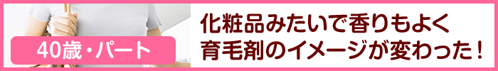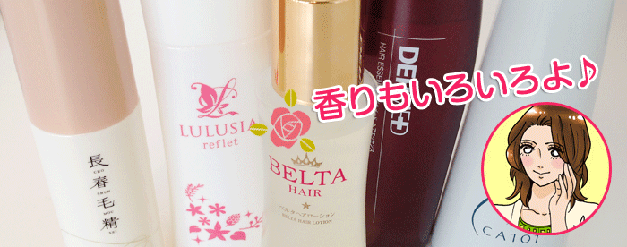 それから、ほのかにアロマなどの爽やかな香りがする女性用育毛剤は、塗布後に香りが気にならなくあるものもあれば、最初はいい香りに感じても使っているうちに不快に感じることもあるみたいなのよ。