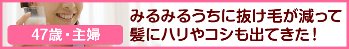 この歳で薄毛とか・・・嘘でしょ・・・て思ったけれど現実でw女性用育毛剤の口コミを見ると私より若い人も使っているもいたいだし、抜け毛酷いし髪もパサパサだし仕方ないからCA101を使ってみました!女性用育毛剤ってもっとおばさんっぽいデザインをイメージしていたけれど、CA101は見た目は化粧品みたいだし香りもよくて育毛剤のイメージがガラッと変わりました。しみたりもしないし髪もツヤツヤになったし、この女性用育毛剤だったら友達にもおすすめできちゃいます。