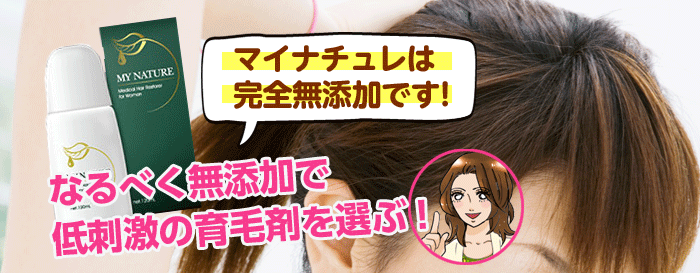 基礎化粧品と同じように毎日使う女性用育毛剤は、肌に優しい無添加のものか低刺激のものを選ぶといいわ。