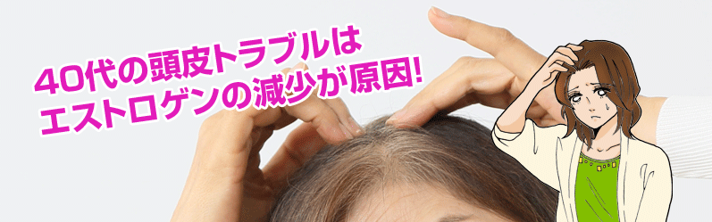 40代女性の薄毛・抜け毛の原因の多くが加齢によるものだと考えらていて、女性ホルモンの一種であるエストロゲンの分泌が減少することで抜け毛が増えて薄毛になってしまうことが多いみたいだわ。